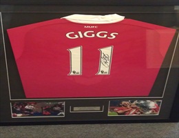 Signed Ryan Giggs shirt with photo's from the champions leauge 1998-1999 season.